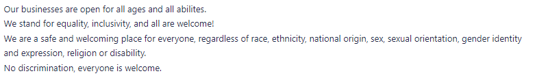 Every day, more and more businesses are listing themselves as ‘Open For All’. Our registration form gives business owners the option of including a personal message and we love reading these as they roll in.