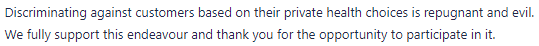 We thank Ms. Dean for her courage in speaking the truth, and we thank the Open For All businesses refusing to support medical apartheid.